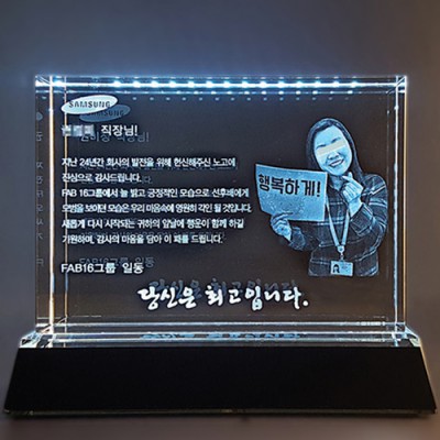 | 기타사항 | 세움140x60x195mm 누임180x60x145mm *LED 크리스탈받침 ※사진 삽입시, 평면/입체 비용이 추가됩니다. |